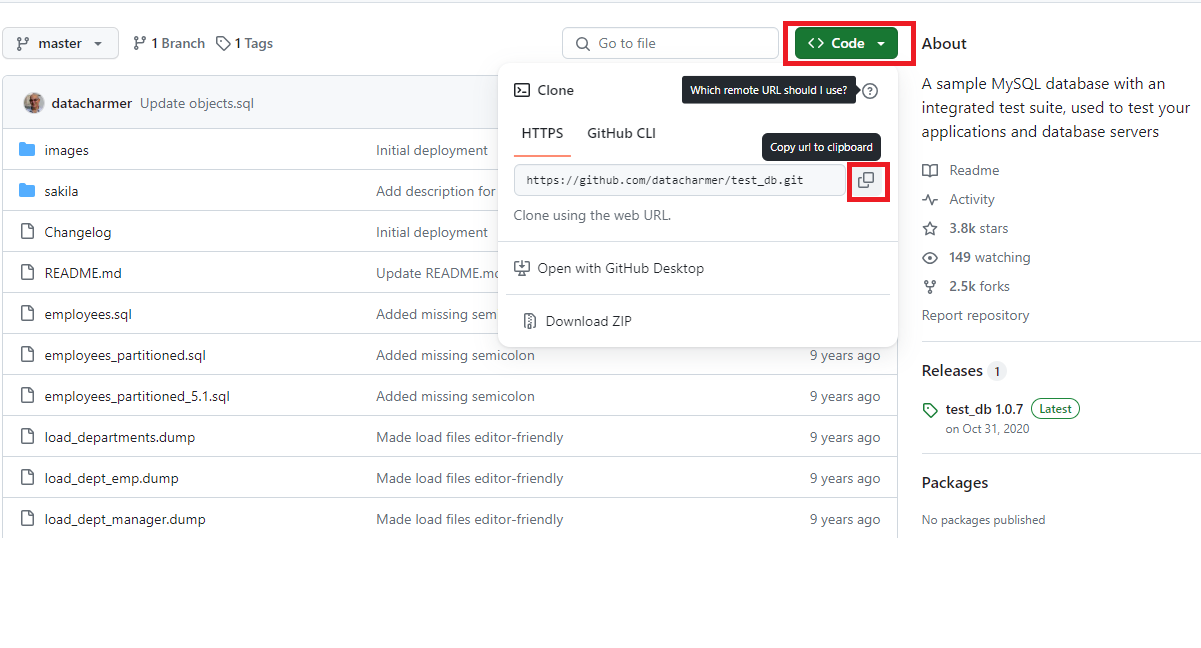 git clone https://github.com/datacharmer/test_db.git