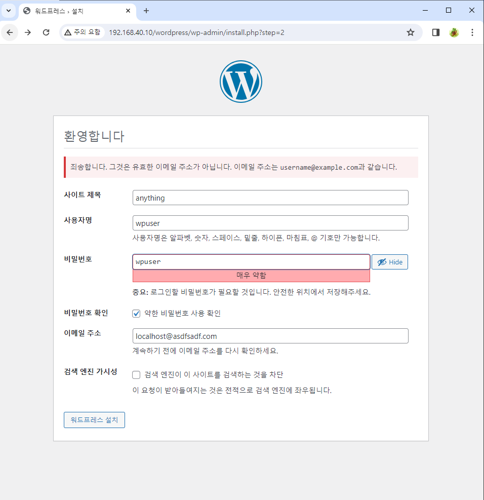 chmod 755 /var/www/html/wordpress/ * --권한주기