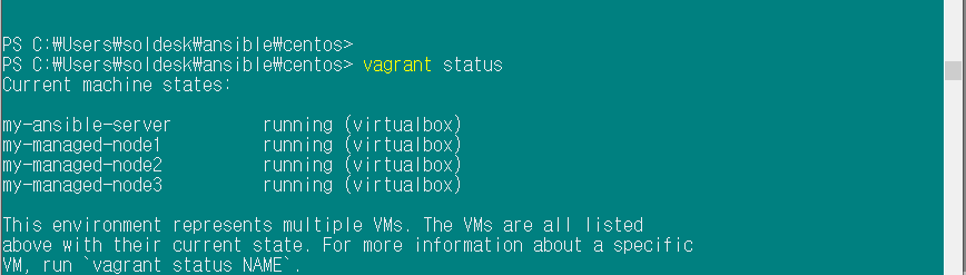 4. vagrant up 이라고하면 server가 설치 될 것이다. 그 후 다시 vagrant up을 하면 node1,2,3 가 설치 될 것이다.