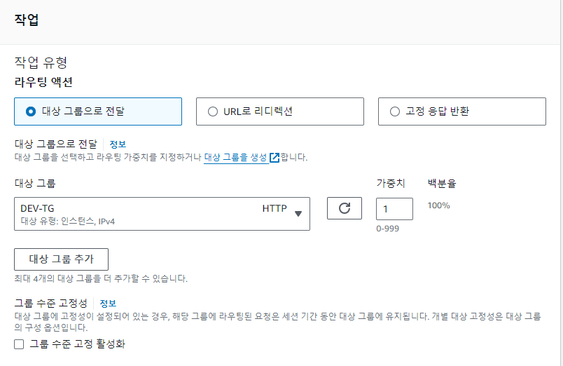 대상 그룹으로 전달 DEV-TG