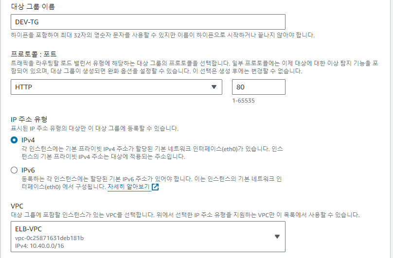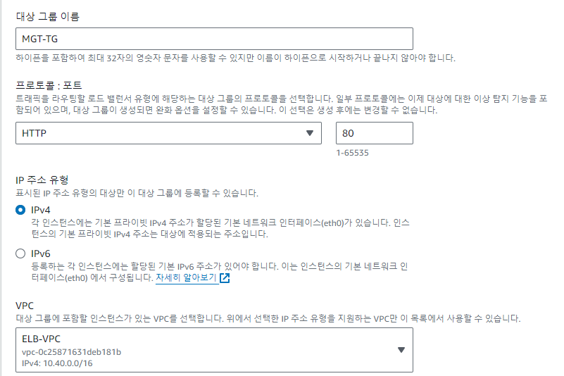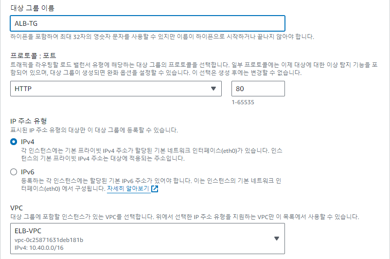대상 그룹 이름 : ALB-TG, VPC : ELB-VPC