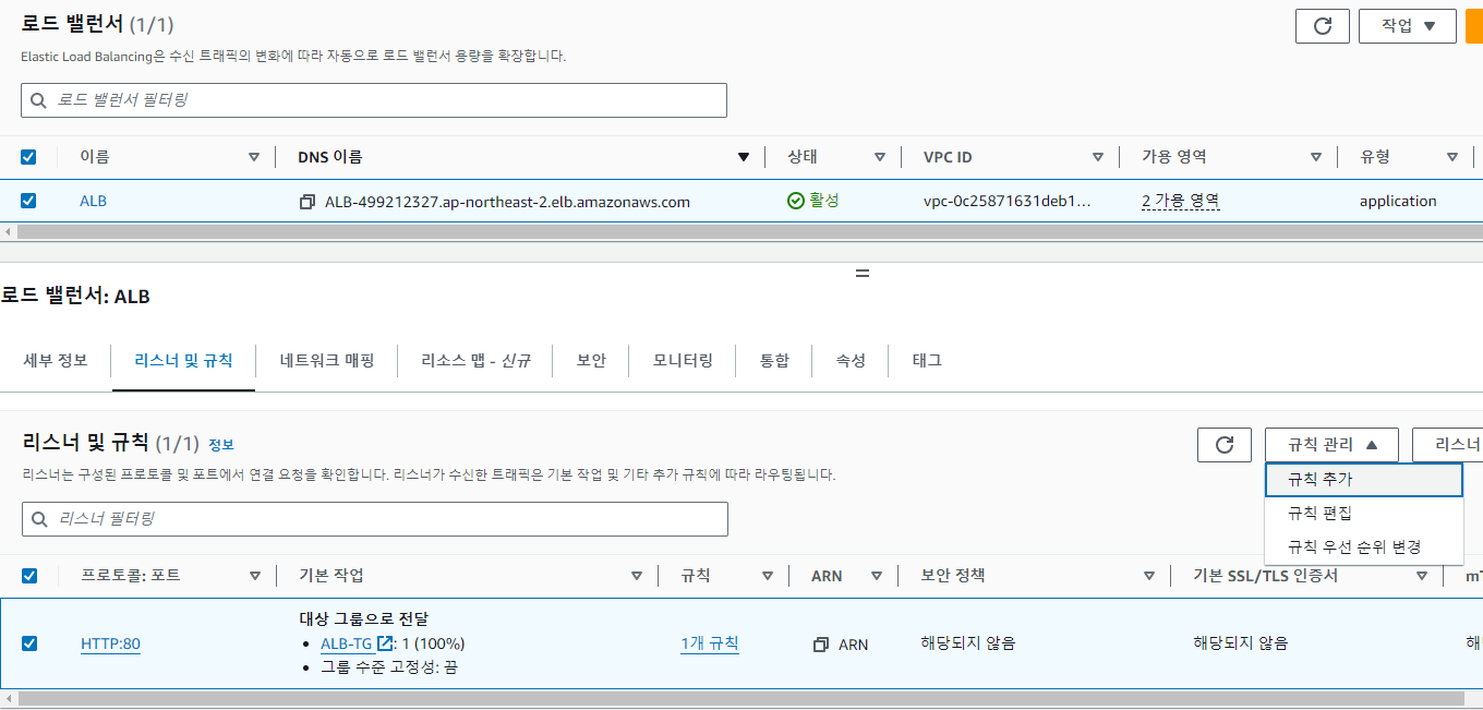 ALB 리스너 규칙 추가